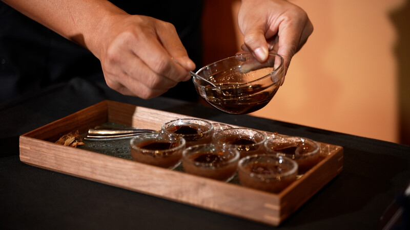 以油脂、肉骨与药膳汤底熬炖萃取而成,苦中带甘、甘中有鹹,温润而有余韵,药香与肉香交互作用,肉骨茶带有鲜浓的肉香,配上香料的独特香味,加上慢慢渗出浓郁而不苦涩的药材味道,塑造了肉骨茶令人难忘的特别浓香。